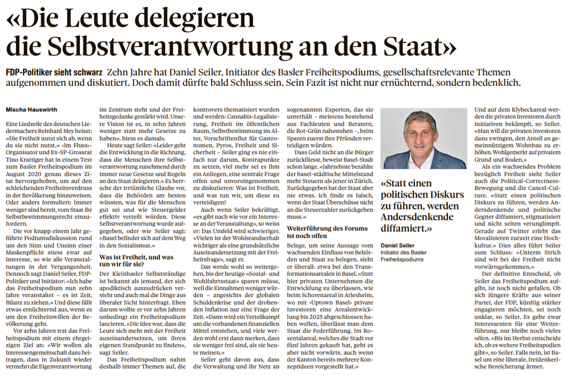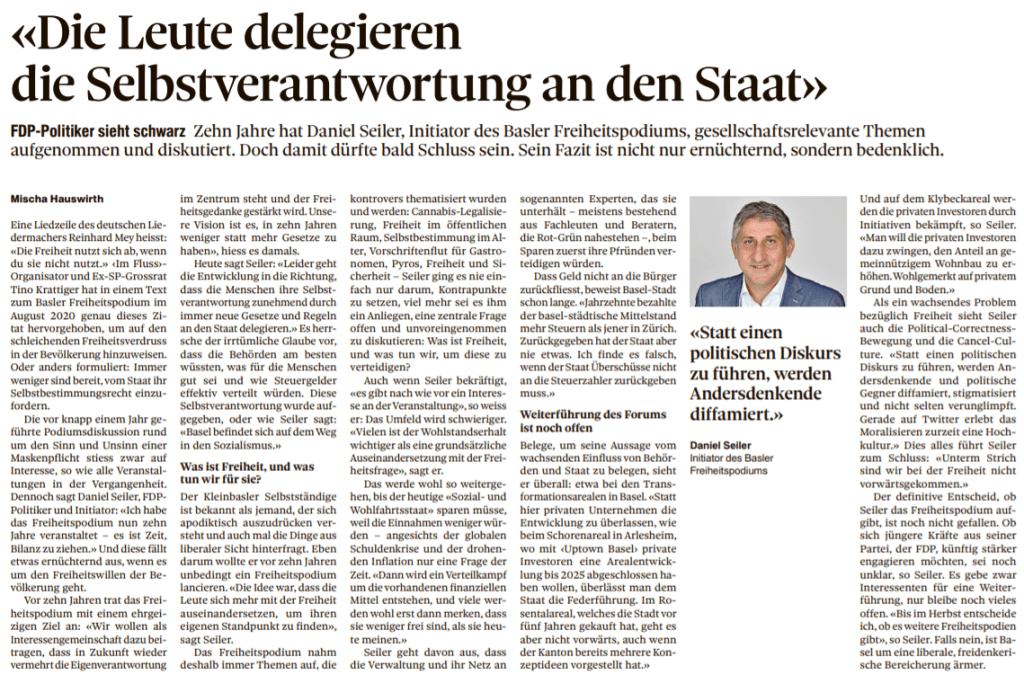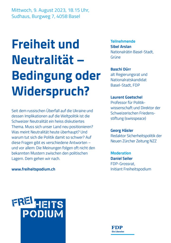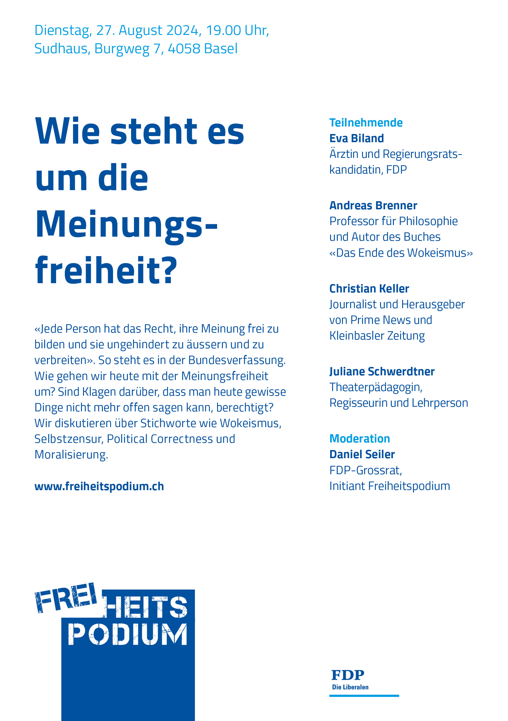 Ich gebe zu, auch ich fand in Zeiten der grenzenlosen Freiheit ein «Freiheitspodium» der FDP eher niedlich. Heute meine ich, wir brauchen es dringender denn je. Wir dürfen nämlich nicht aufhören, Demokratie zu leben, nicht aufhören, den Widerspruch zu fördern, zu widersprechen – Widerworte hiess das früher mal so schön –, Widerworte zu geben. Nachzufragen, zu hinterfragen, unbequem zu sein und den «Mächtigen auf die Finger zu klopfen». Denn wir haben doch aus der Geschichte gelernt, was geschieht, wenn wir die Demokratie preisgeben. Oder? Haben wir doch?
